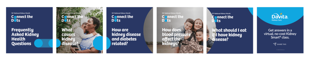 Campaign copy | National Kidney Month: Connecting the Dots of Kidney Health Concept ideation/mood board collaboration with designer Landing page copy Meta carousel ad Video script Featured post Featured 0