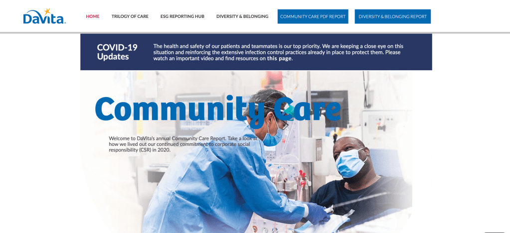 Annual report | DaVita’s Community Care Report DaVita’s Community Care Report (annual corporate social responsibility report) March 2, 2022 0